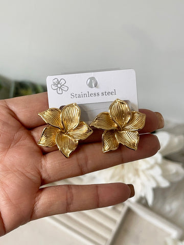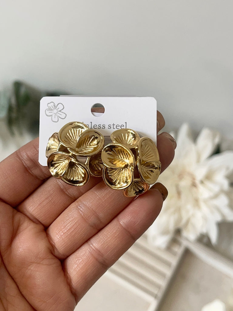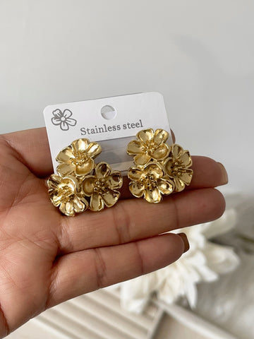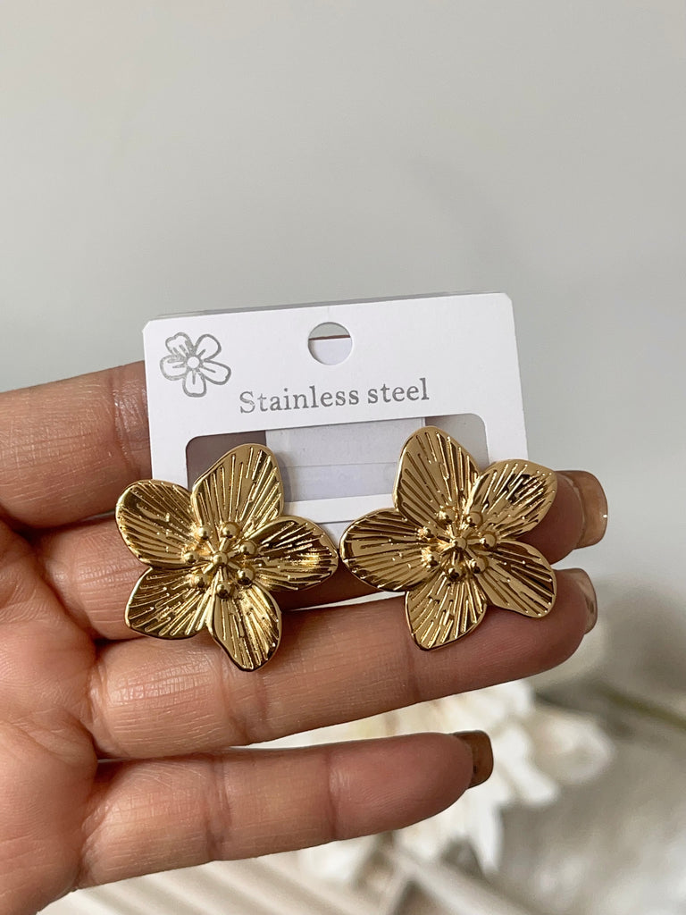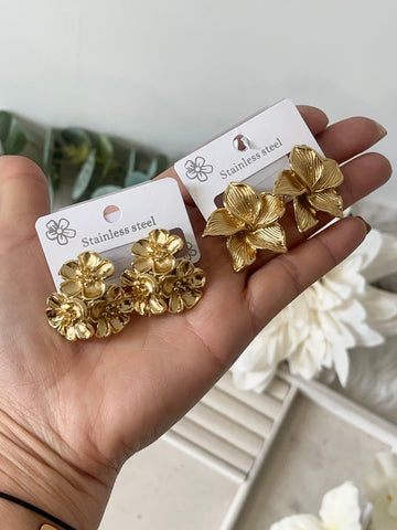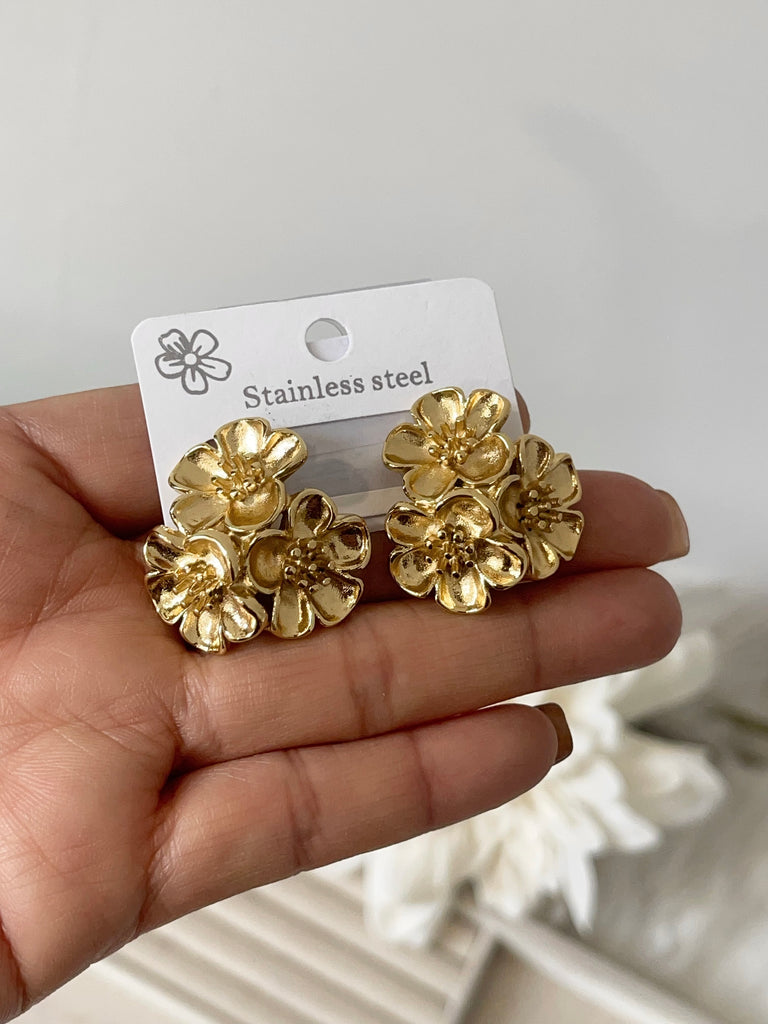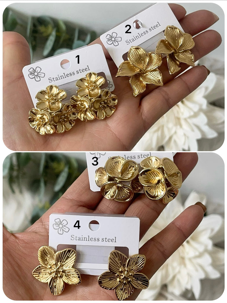 Aretes colgantes vintage con flor dorada y cuentas rojas pen899 tk-26