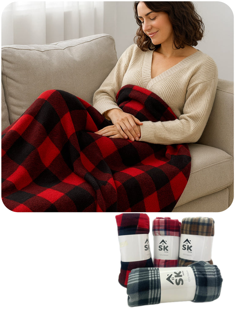 Estas mantas de franela de SK Home están confeccionadas con material ultrasuave y cálido, perfectas para usar en el hogar, la oficina, viajes o actividades al aire libre. Su diseño clásico de cuadros y sus cuatro colores disponibles combinan fácilmente con cualquier decoración.