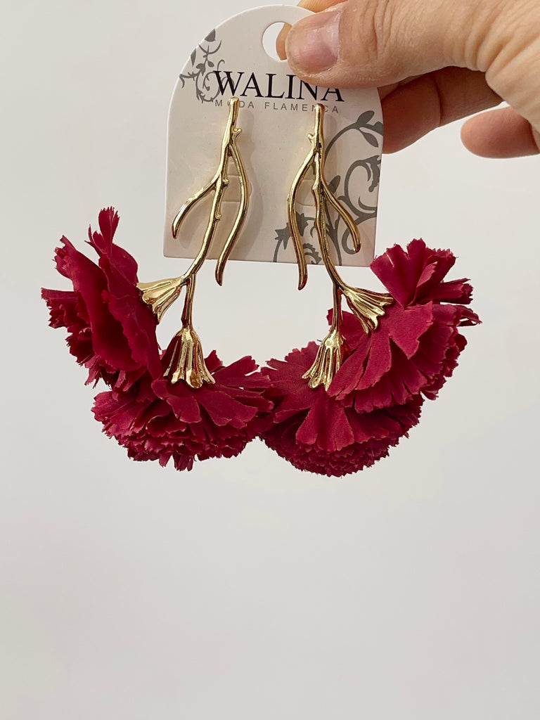 PENDIENTES DE FLAMENCA EN COLOR DORADO Y CLAVEL