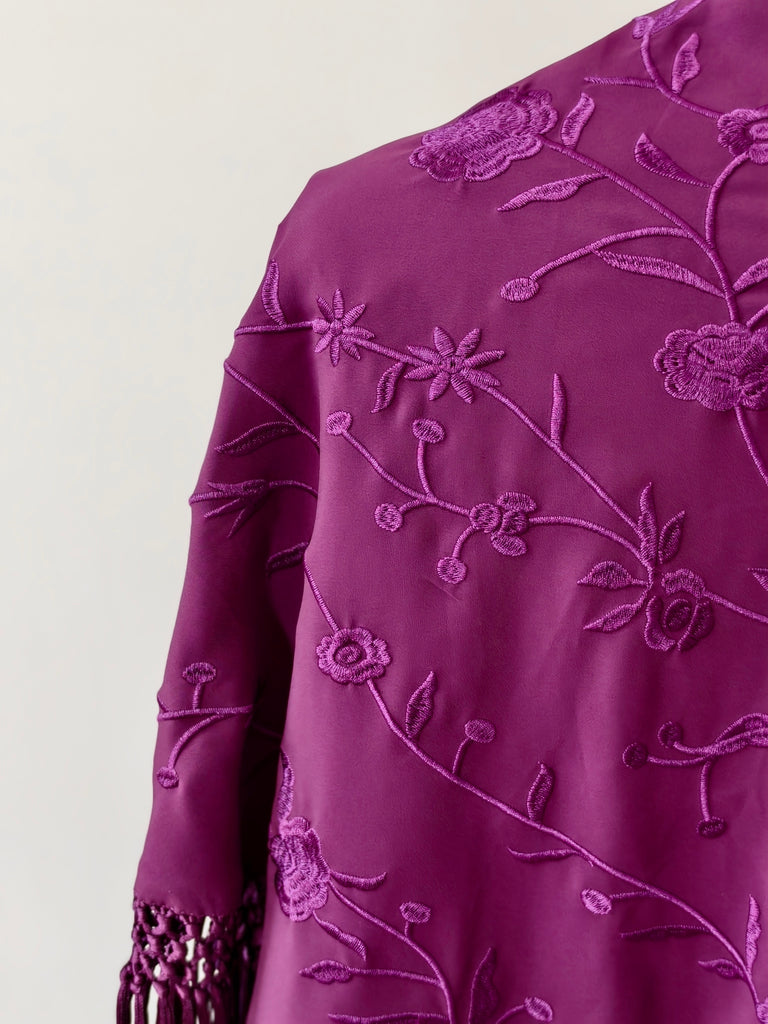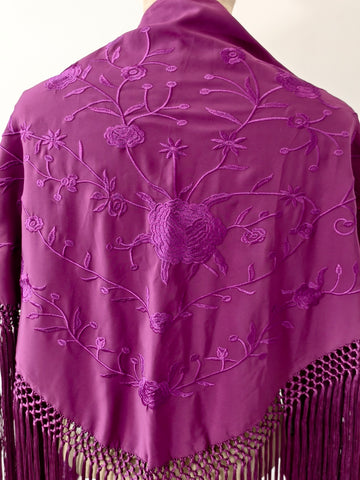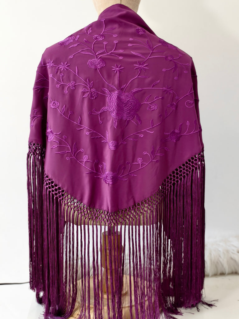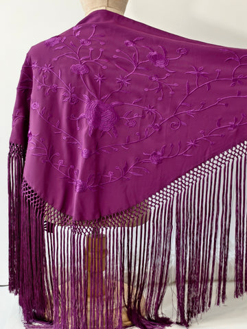 M01-2 Mantón bordado lila con flores y aves con flecos MANT3999