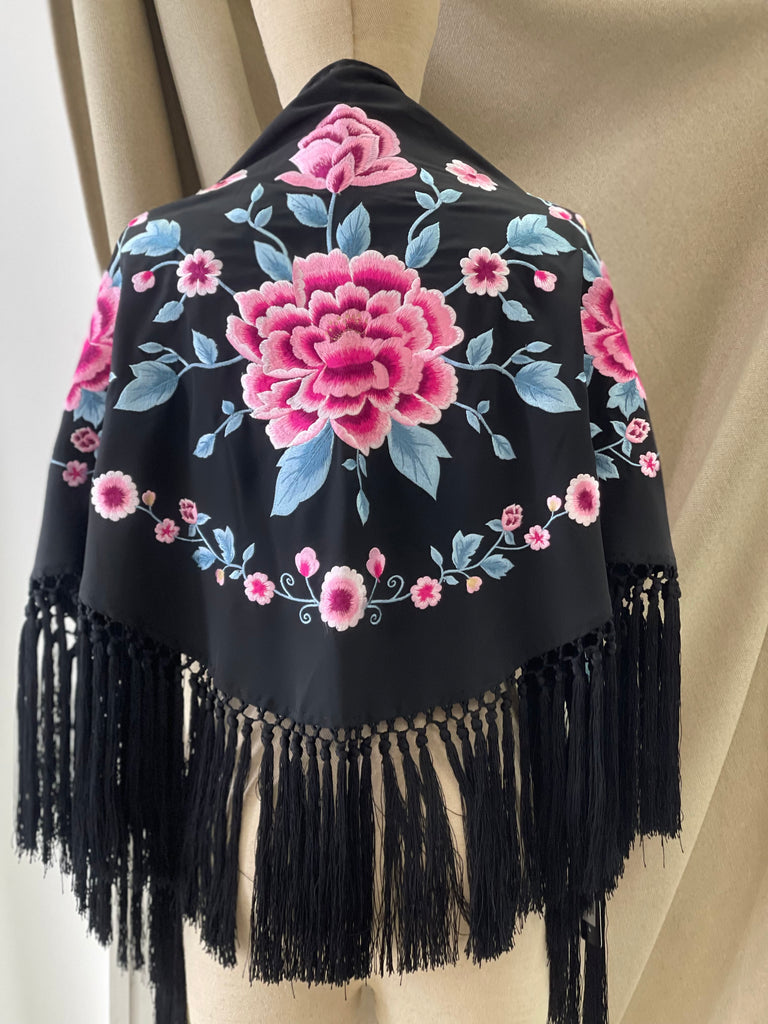 M00-3 MANTONCILLO BORDADOS FLAMENCO NEGRO MANT7999