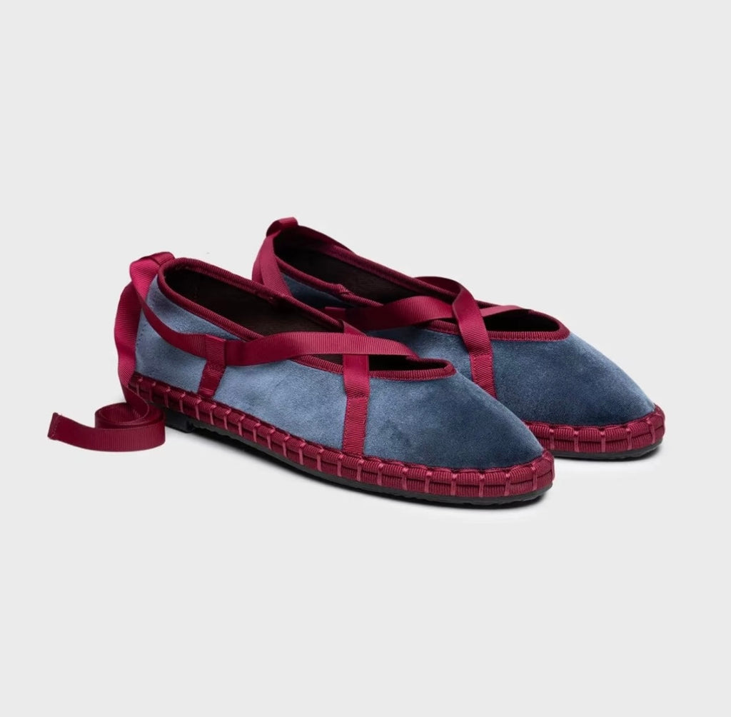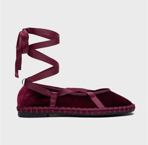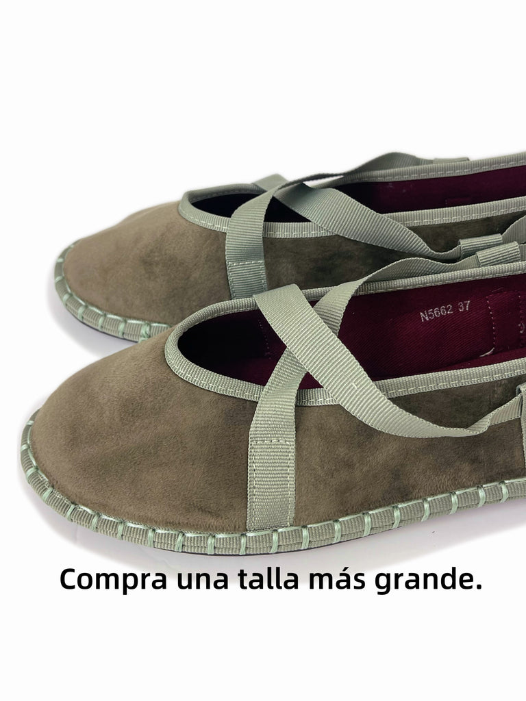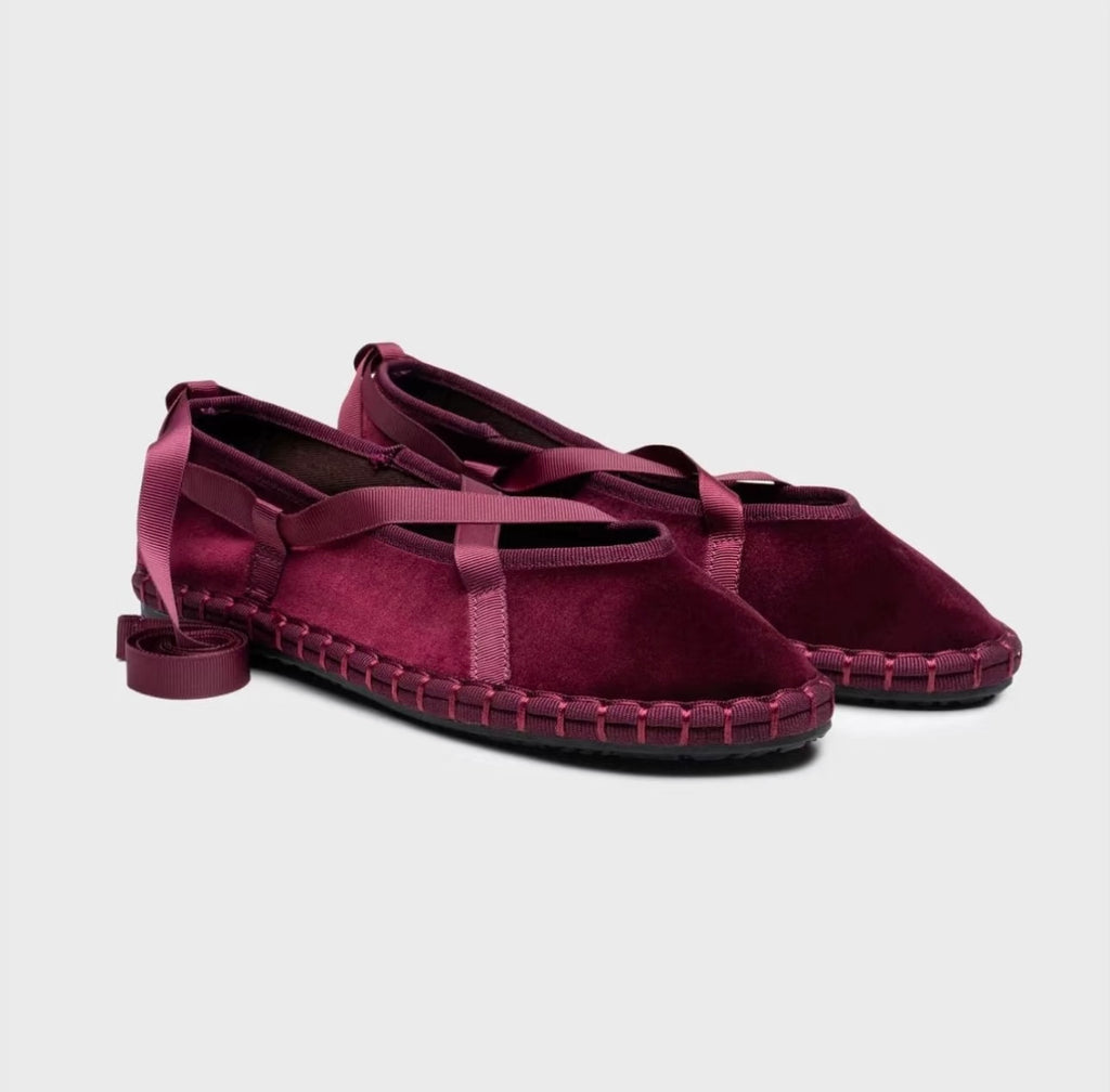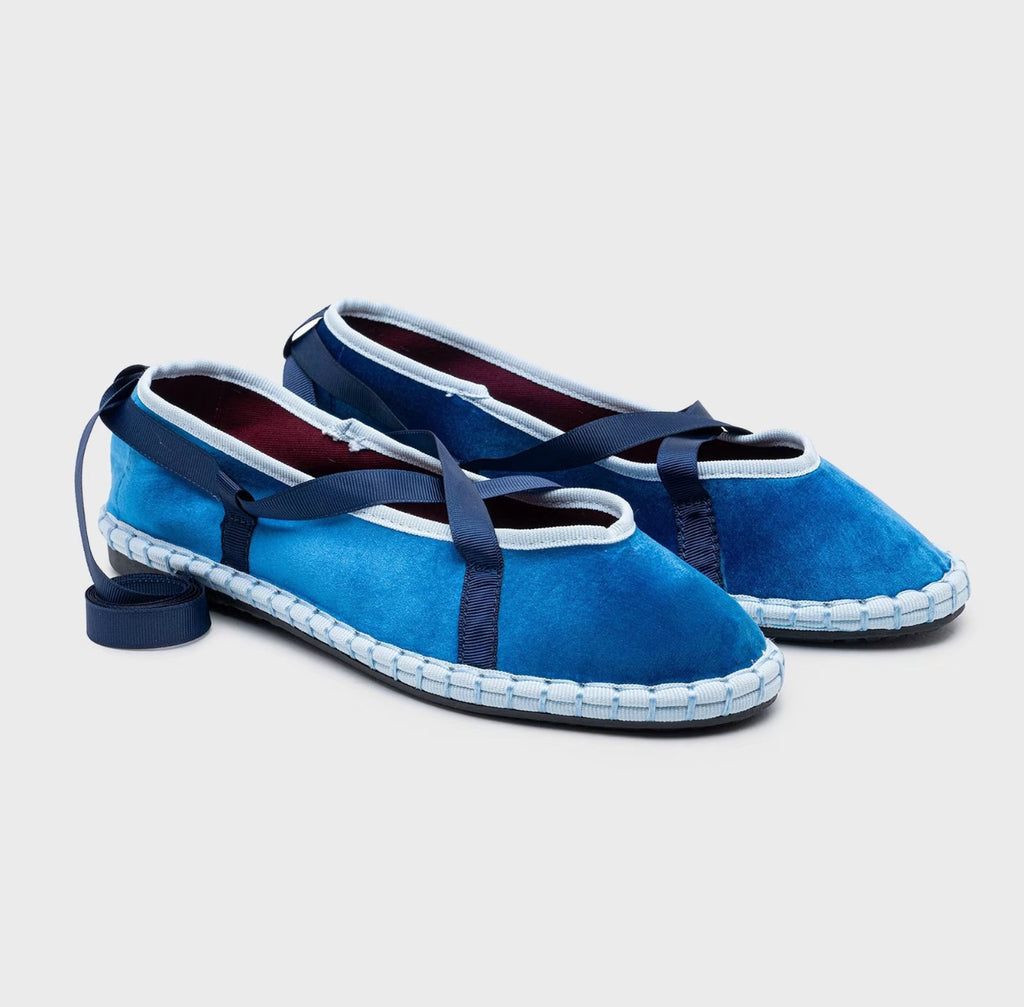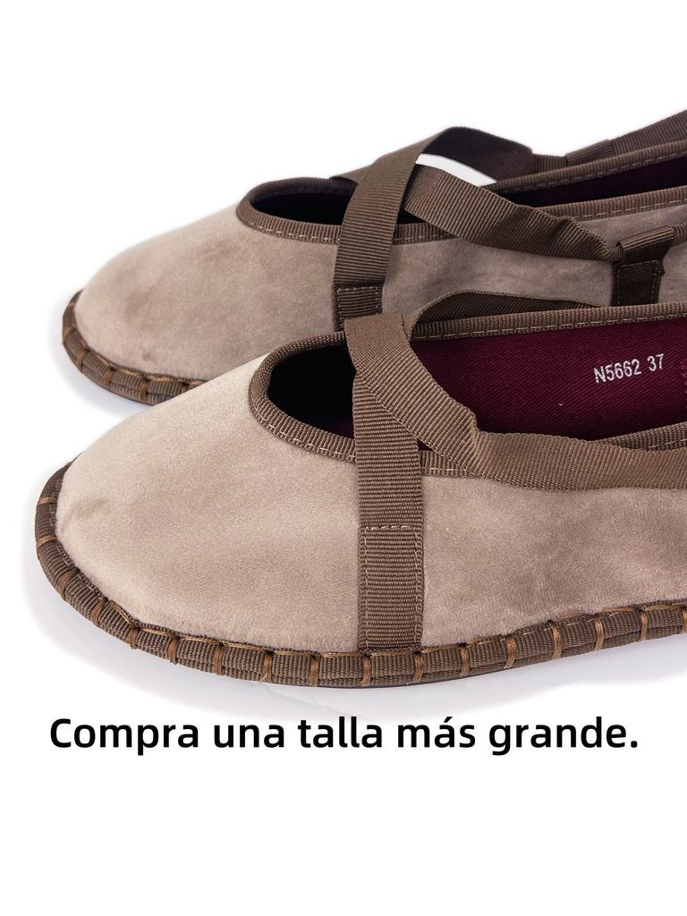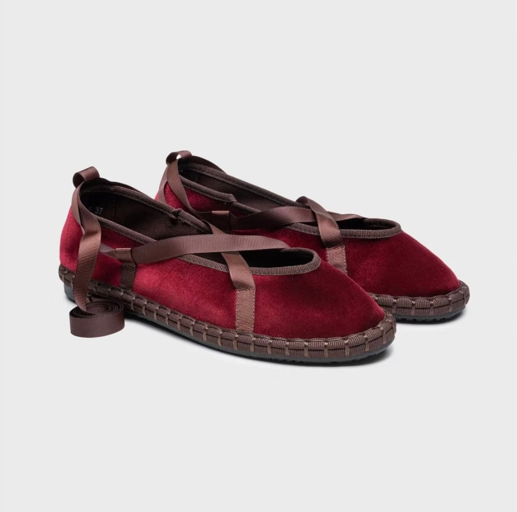 Zapato plano tipo bailarina. Tejido terciopelo. Acabado en punta redonda. Cierre de cordones. Suela plana. Suela de contacto antideslizante. Altura piso.1.0cm