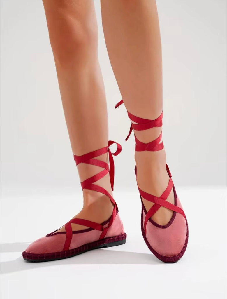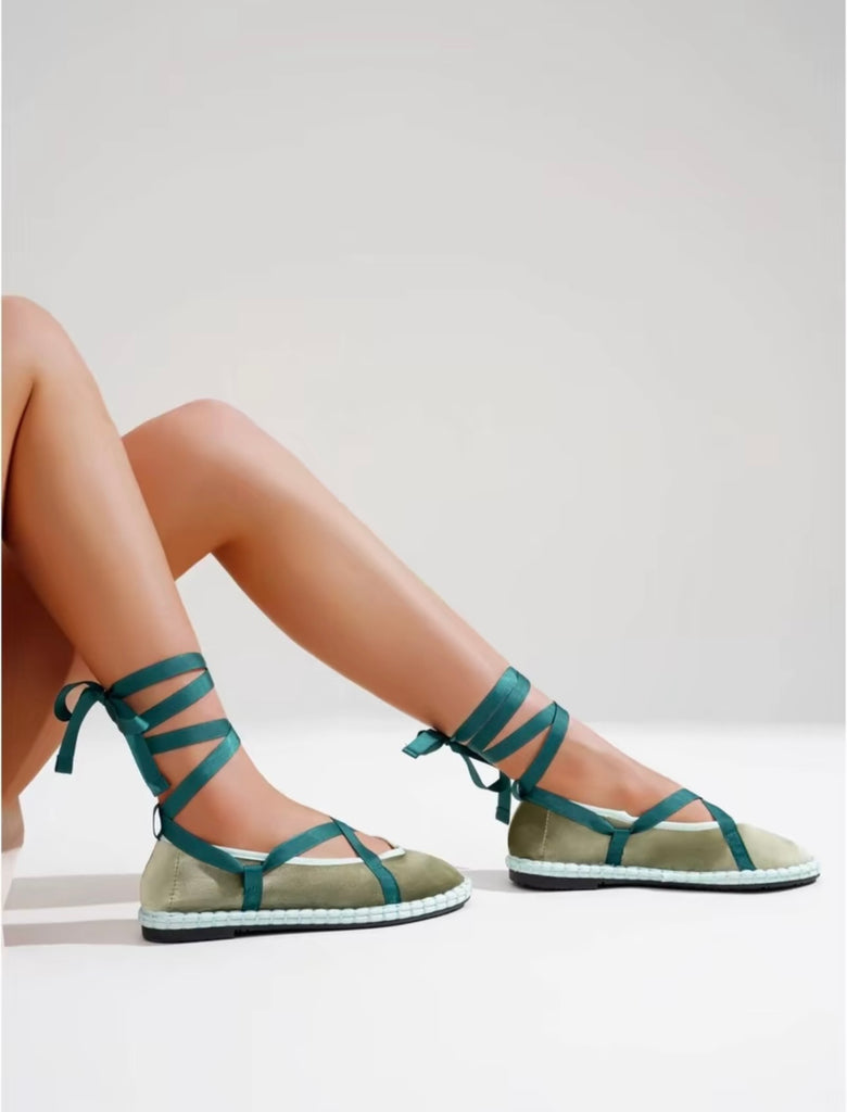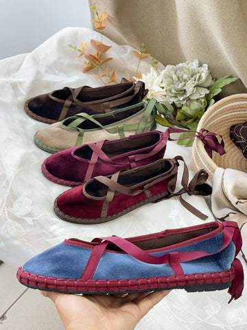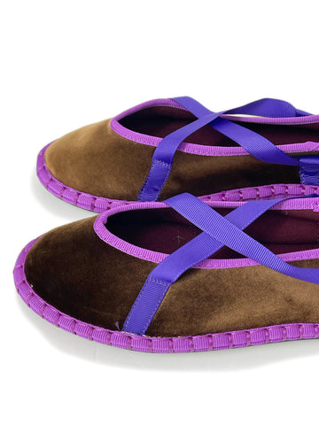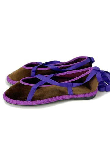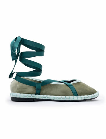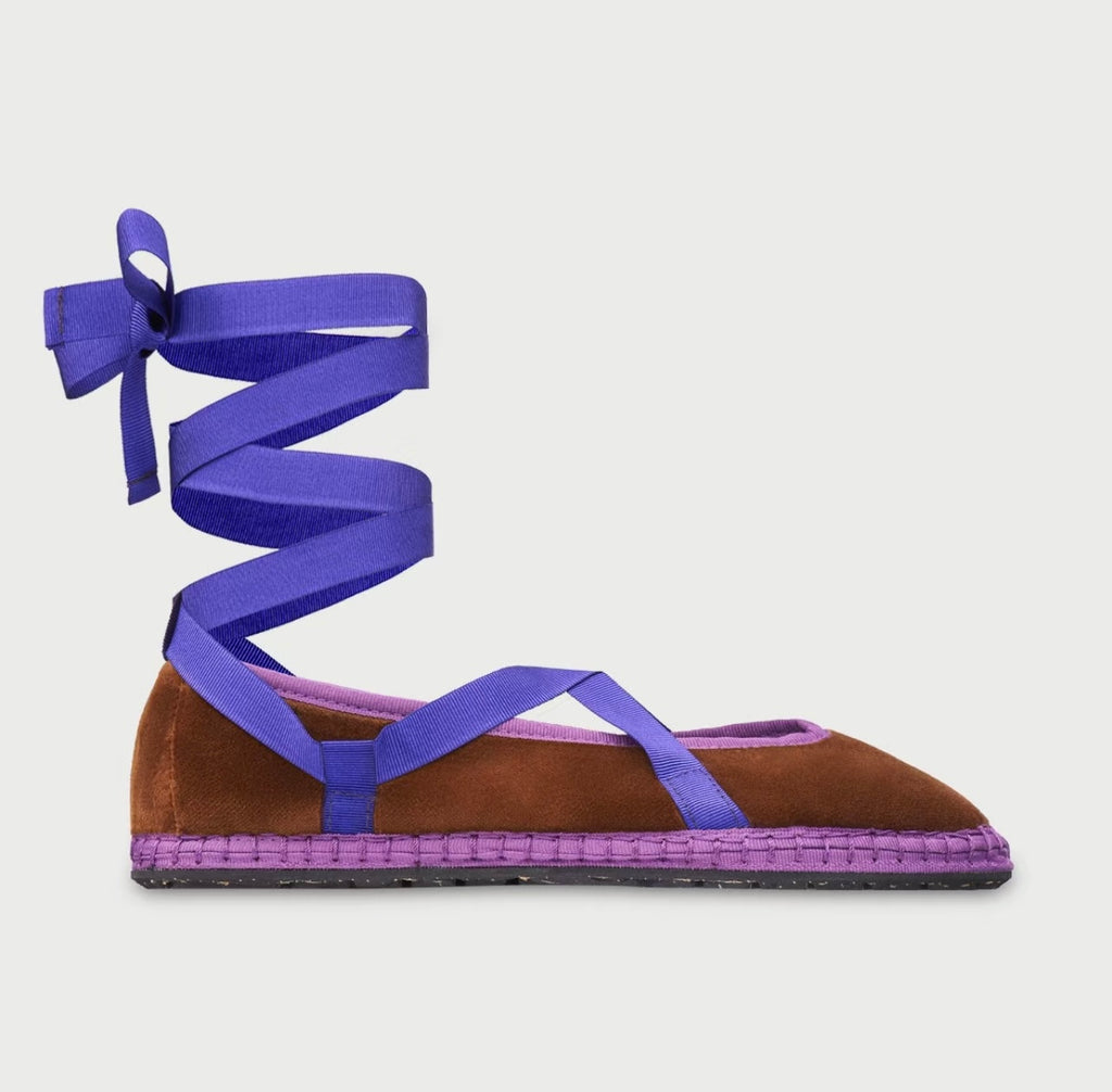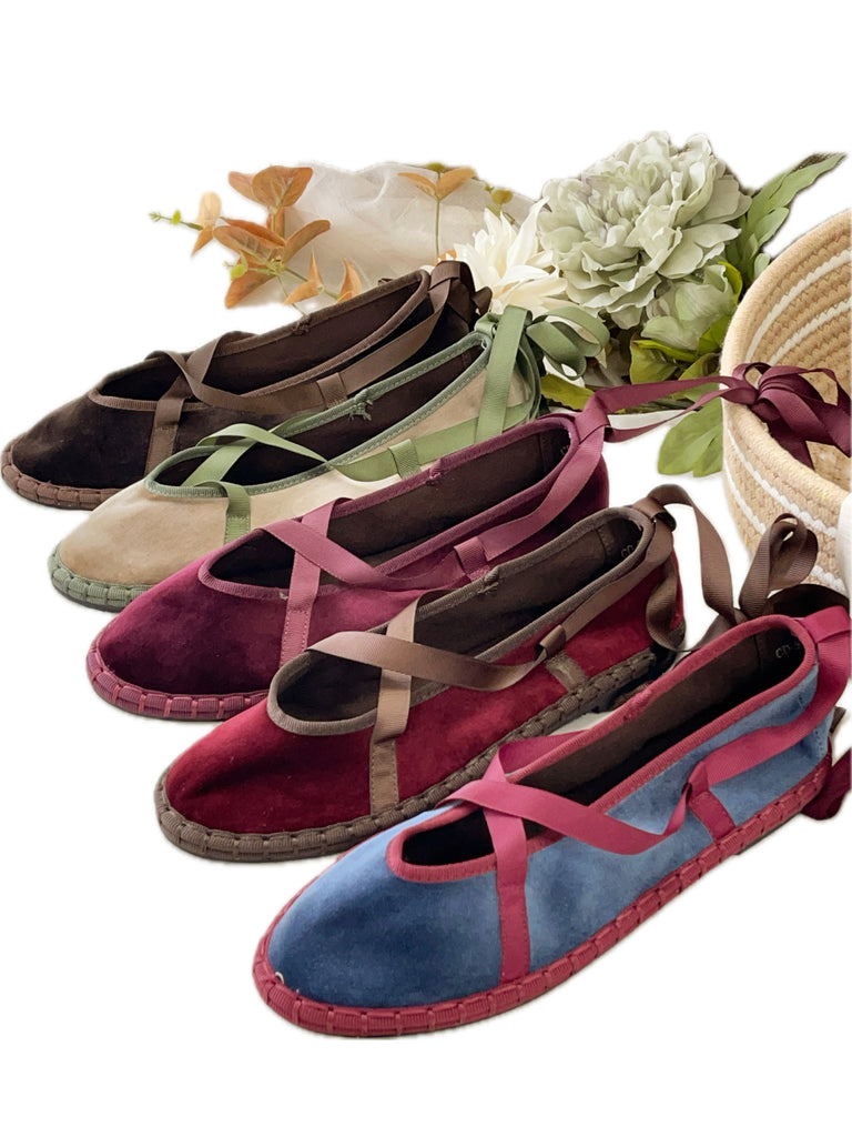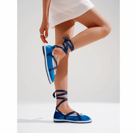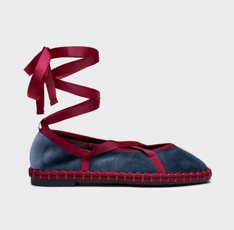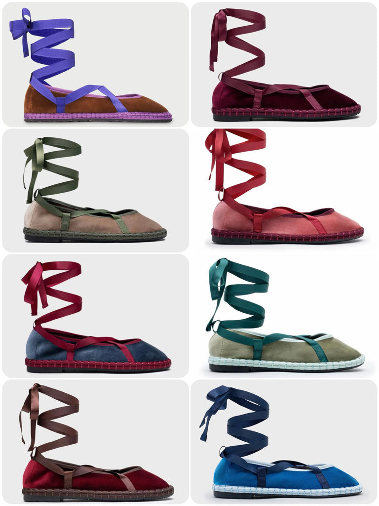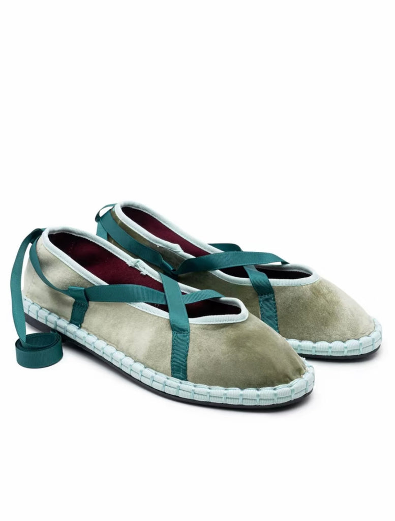 Zapato plano tipo bailarina. Tejido terciopelo. Acabado en punta redonda. Cierre de cordones. Suela plana. Suela de contacto antideslizante. Altura piso.1.0cm