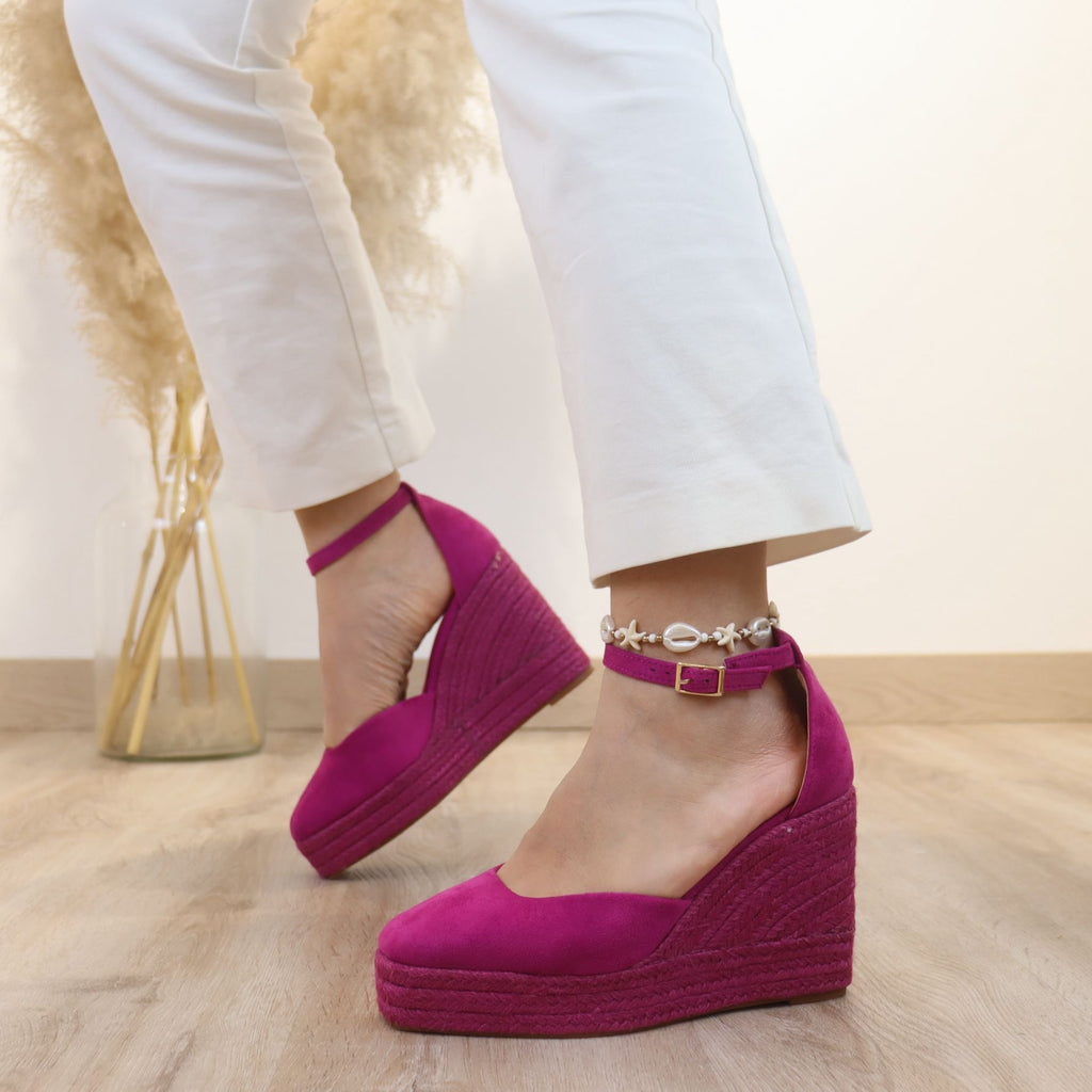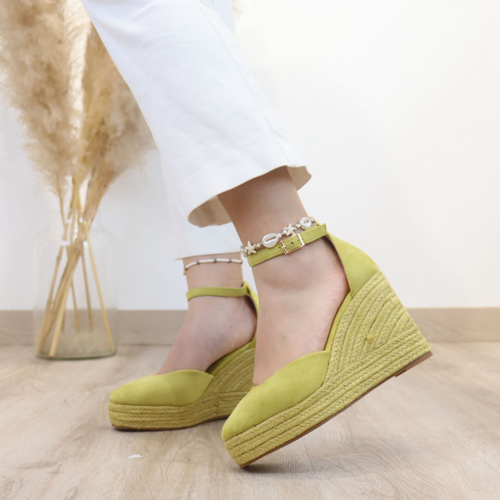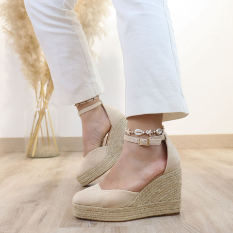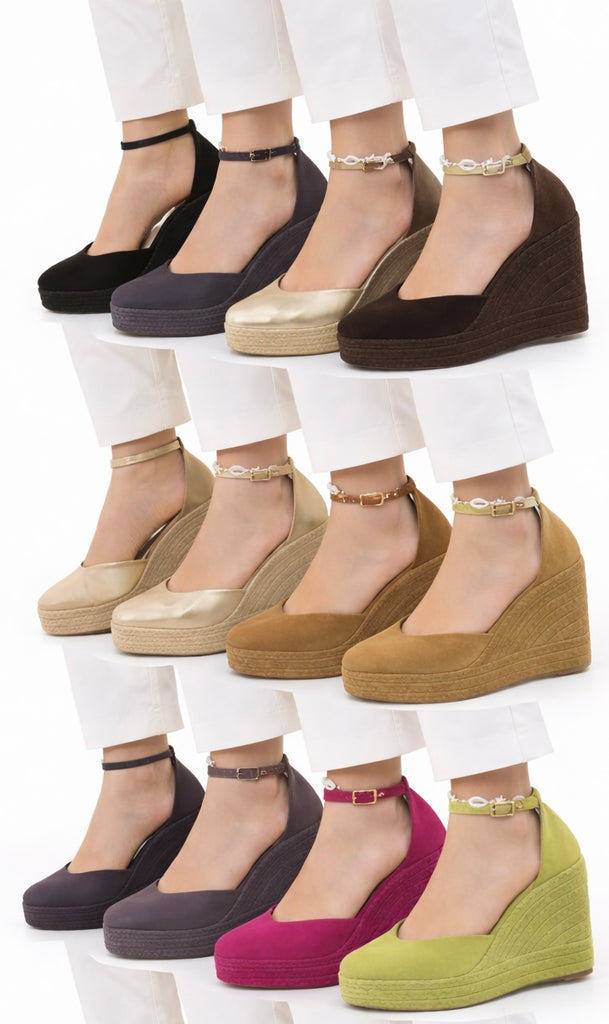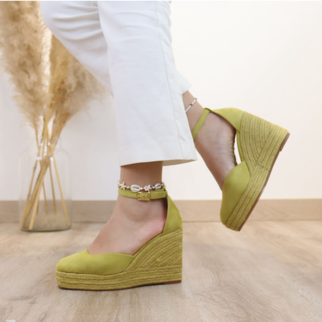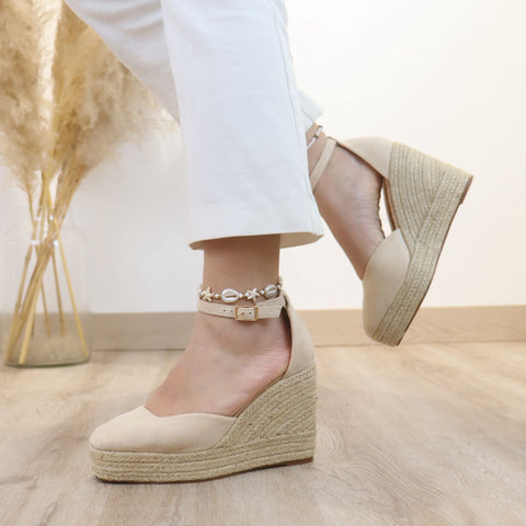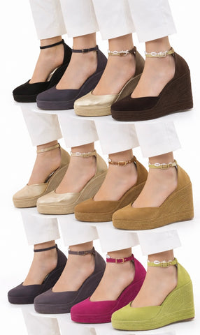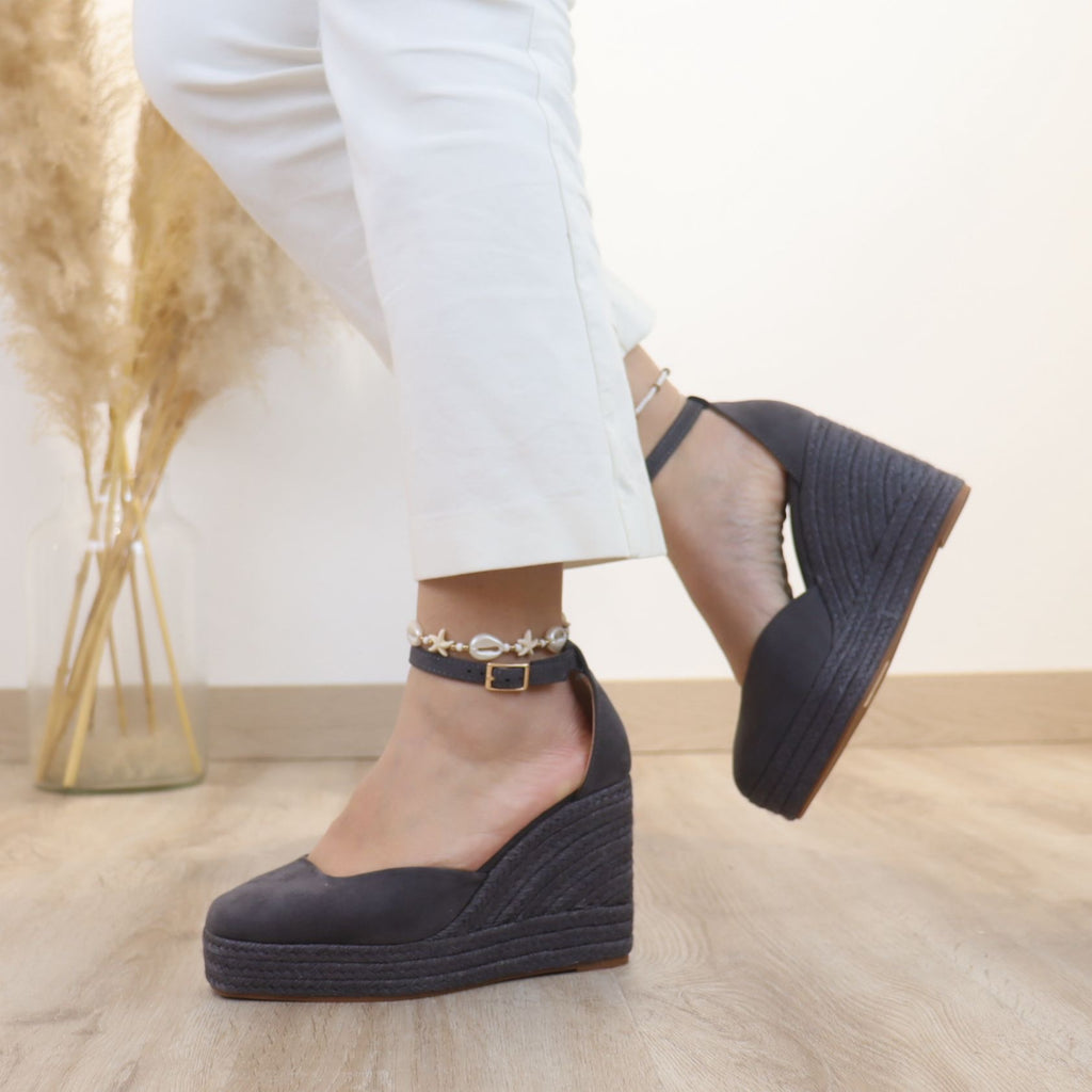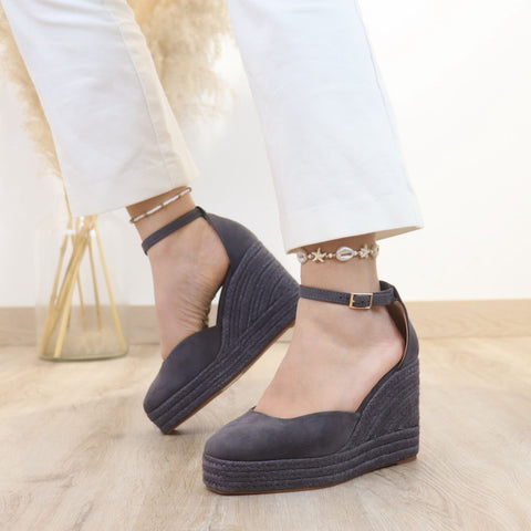 Diseño moderno de cuña con suela de yute, ligero y cómodo.