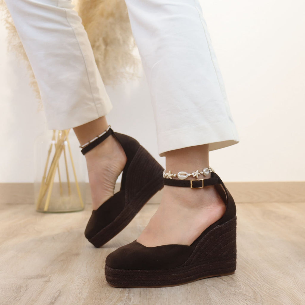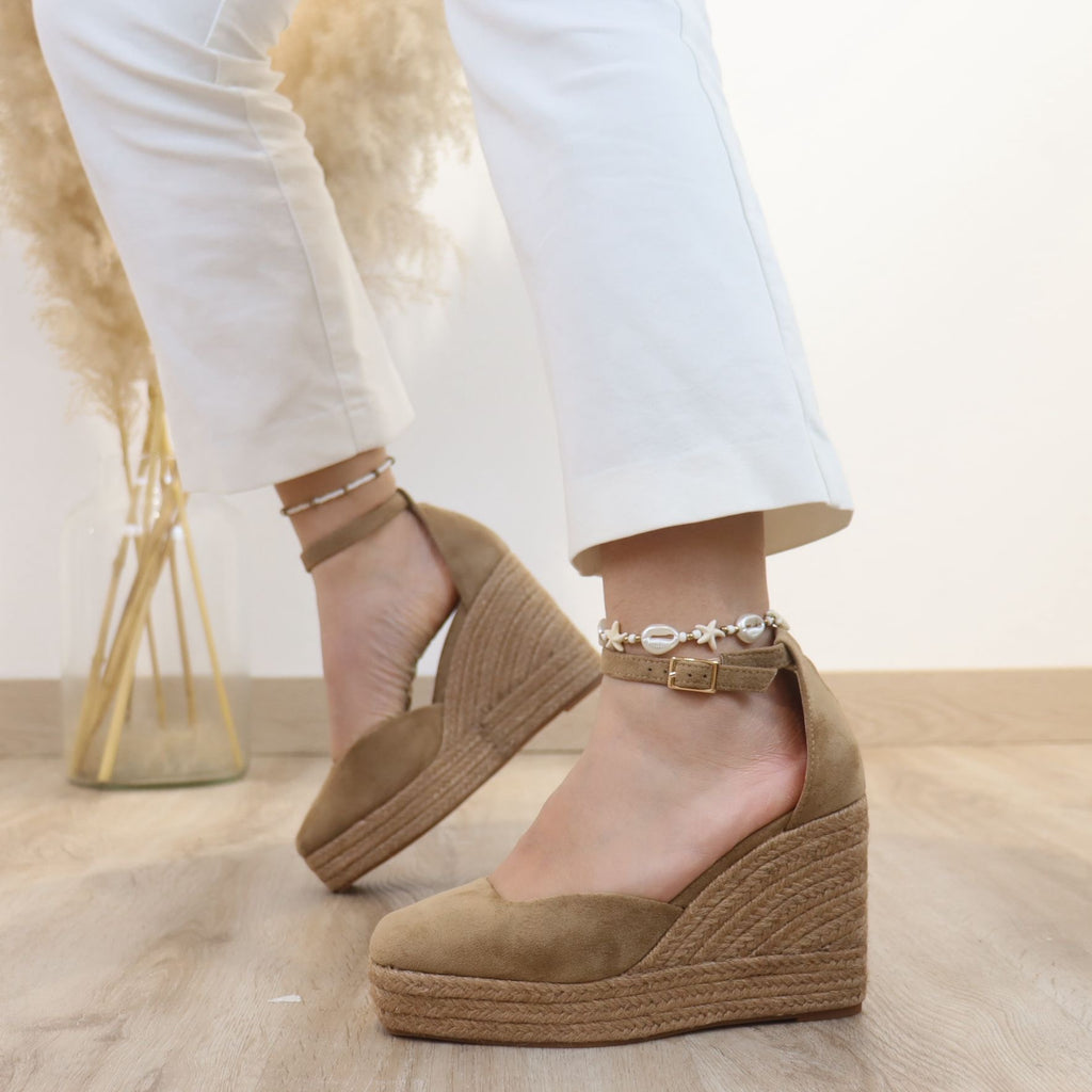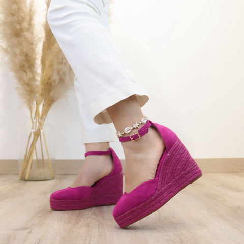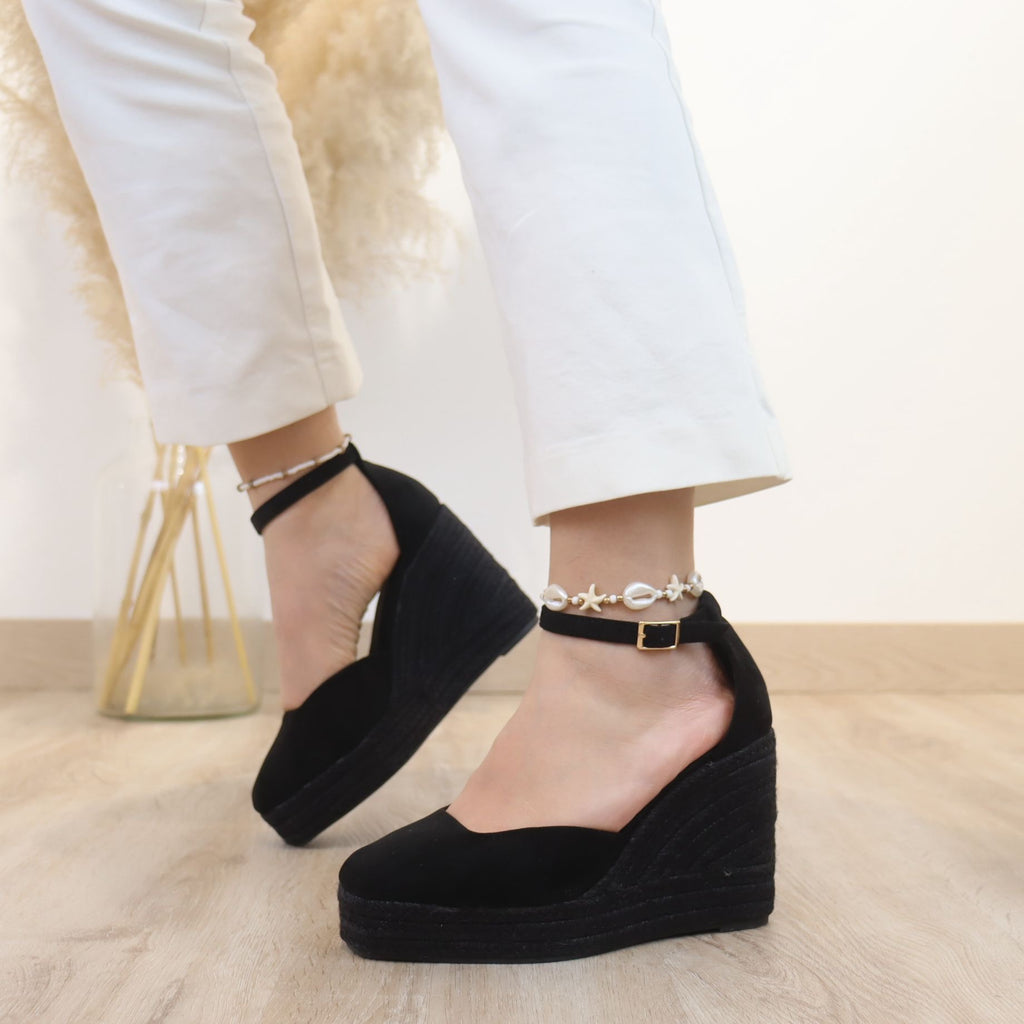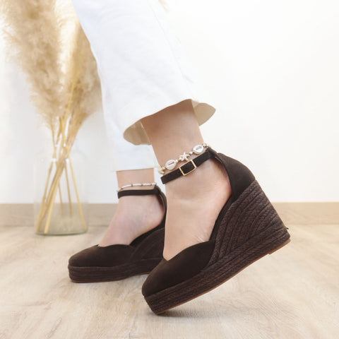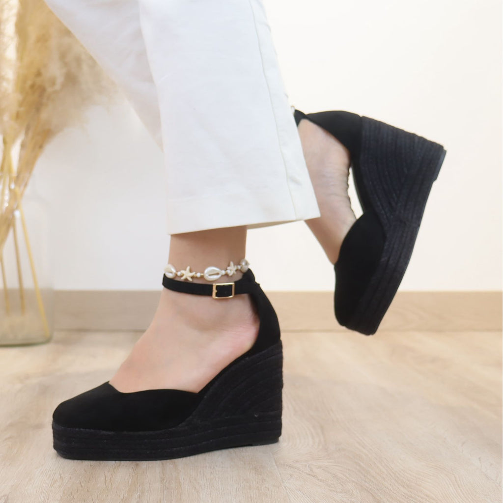Diseño moderno de cuña con suela de yute, ligero y cómodo.