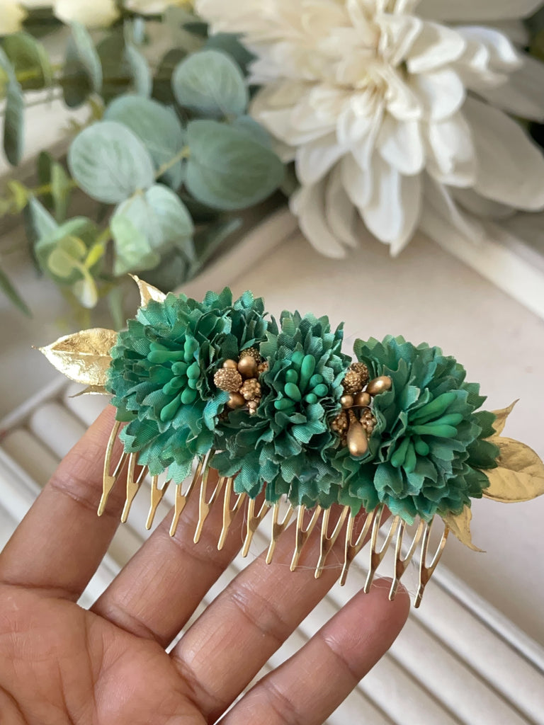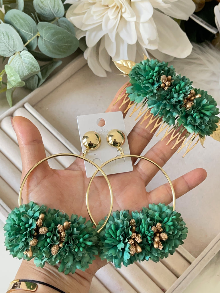 pendiente y peineta verde