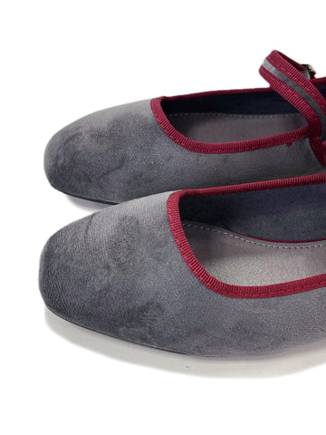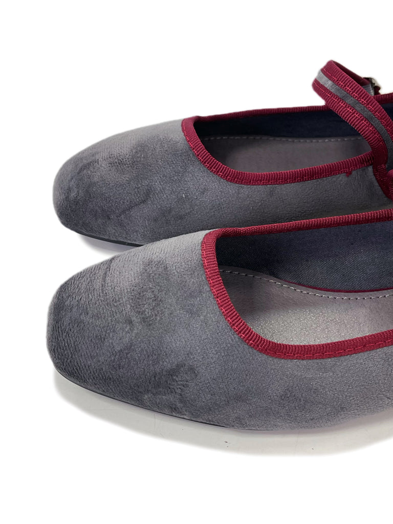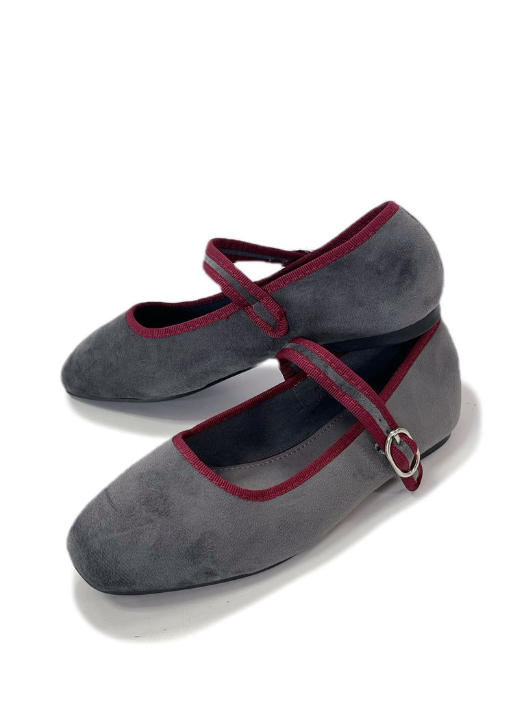 Estos zapatos estilo Mary Jane están elaborados con un material afelpado suave y agradable al tacto, ofreciendo comodidad durante todo el día. El diseño clásico de punta redonda, combinado con ribetes y tiras en color burdeos, aporta un toque elegante y vintage. El cuerpo gris del zapato es fácil de combinar y perfecto para looks casuales, de oficina o estilo artístico. La suela ligera y flexible brinda una pisada cómoda, convirtiéndolos en un par versátil para uso diario.