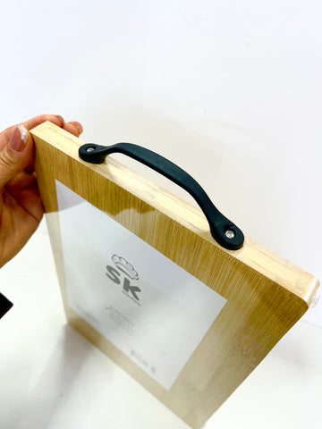 Esta tabla de cortar SK Kitchen está elaborada en bambú natural, resistente y con propiedades higiénicas. Su asa superior permite un almacenamiento práctico y cómodo. Es una herramienta esencial para cualquier cocina doméstica o profesional.