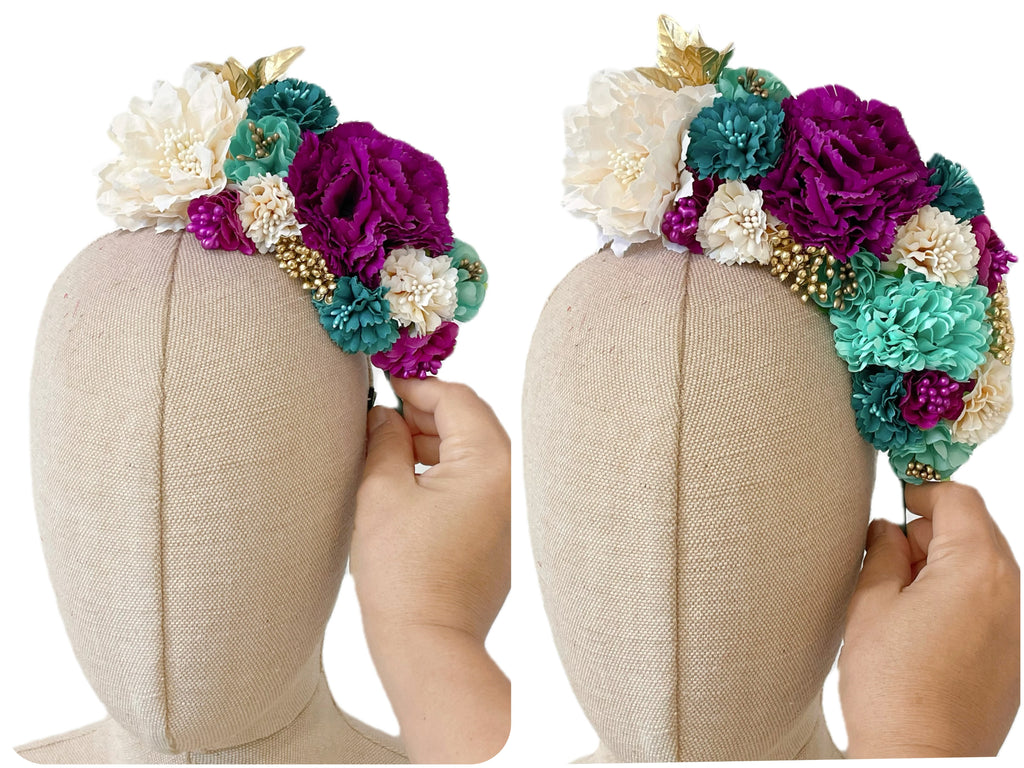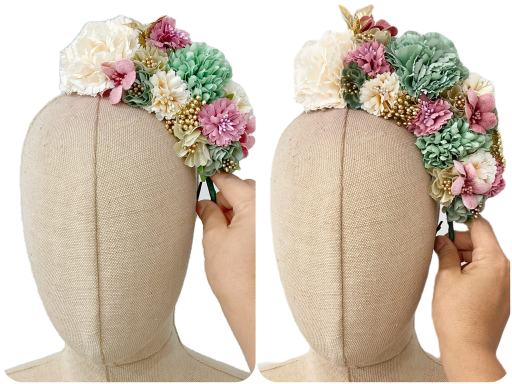 👉 El tamaño de la corona se puede ajustar según la densidad de las flores.